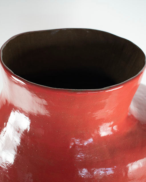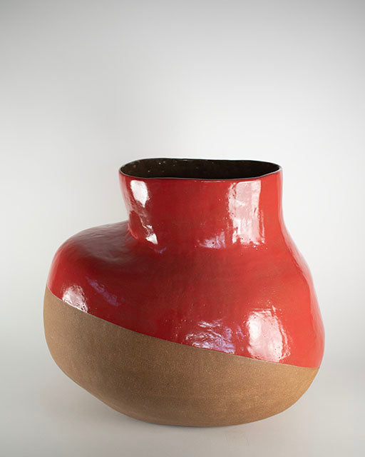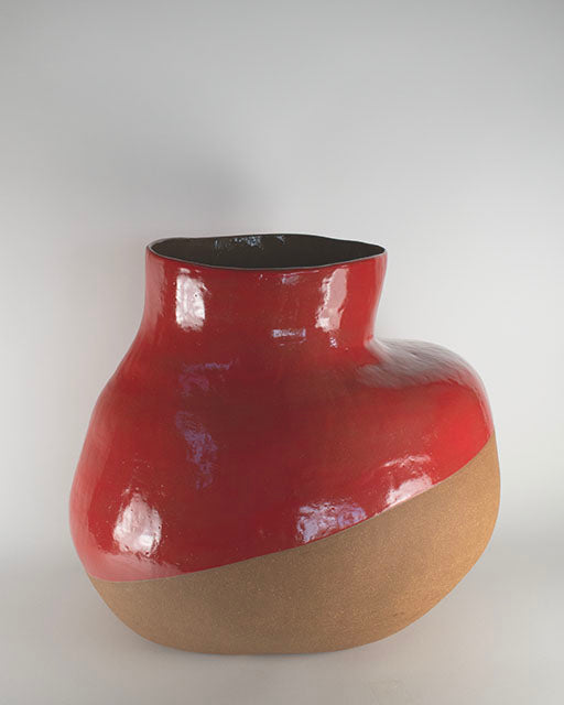 The vessel’s form rises from unglazed clay into a vivid red glaze like the horizon at dusk. In its swelling shape and shifting surface, Red Horizon reflects the tension between grounding and ascent, between what is held and what is released.