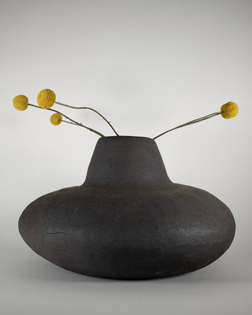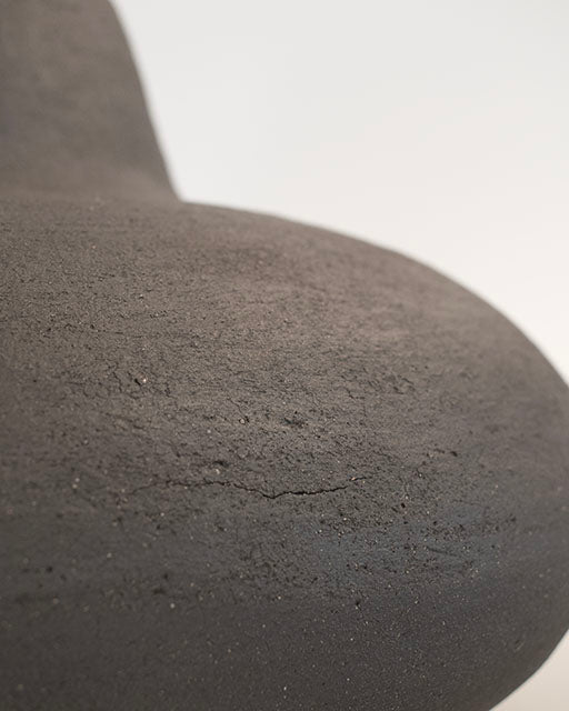 Earthroot is named for its earth-rooted, elemental presence. She has a wide, grounded body, a gently flared neck, and a surface that honors subtle irregularities. The exterior cracks shown in the photos do not go through the vessel, and are considered character features consistent with organic clay art.